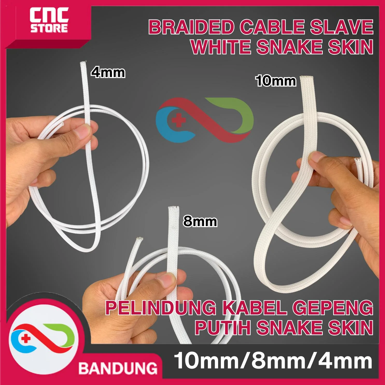 Braided Cable Slave white 4mm Gepeng Pelindung Kabel Snake Skin